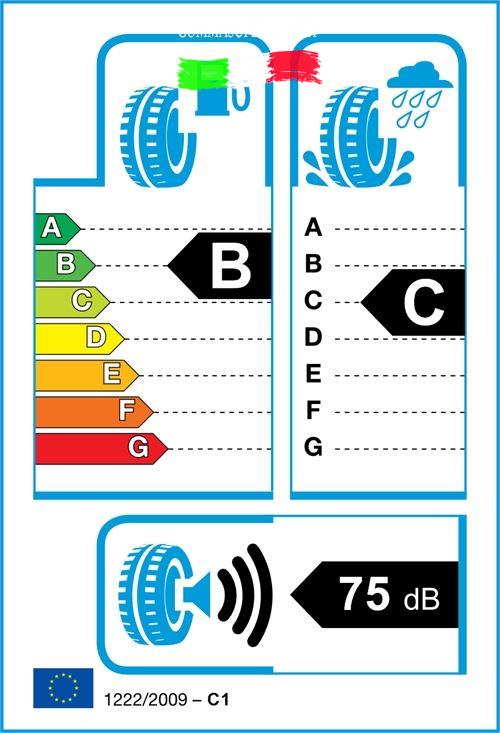 Gli pneumatici sono classificati nell’etichettatura dei pneumatici UE secondo tre caratteristiche di performance: l’efficienza del combustibile(lettere da A a G), l’aderenza a umido (lettere da A a G) ed esterna emissione rumore (decibel).