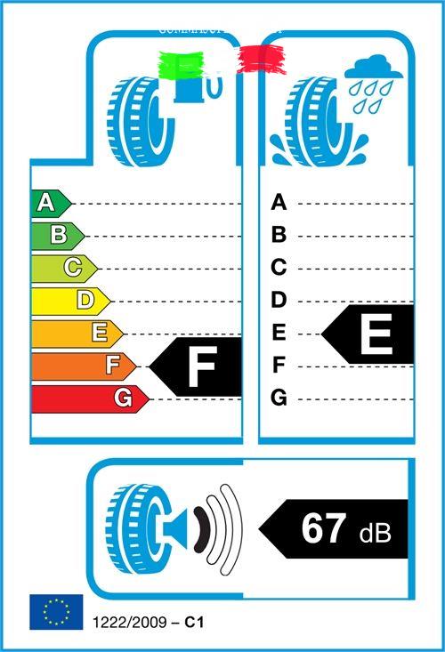 Gli pneumatici sono classificati nell’etichettatura dei pneumatici UE secondo tre caratteristiche di performance: l’efficienza del combustibile(lettere da A a G), l’aderenza a umido (lettere da A a G) ed esterna emissione rumore (decibel).