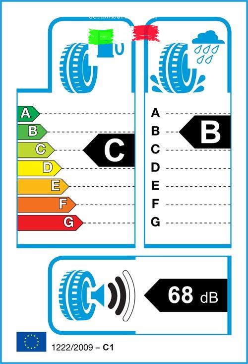 Gli pneumatici sono classificati nell’etichettatura dei pneumatici UE secondo tre caratteristiche di performance: l’efficienza del combustibile(lettere da A a G), l’aderenza a umido (lettere da A a G) ed esterna emissione rumore (decibel).