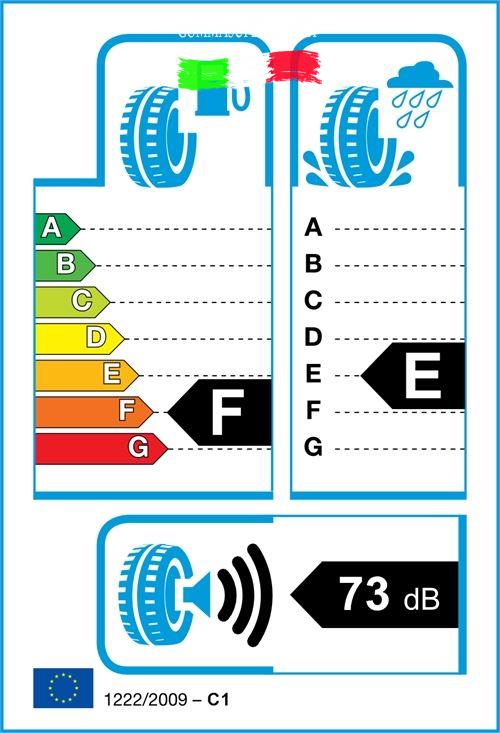Gli pneumatici sono classificati nell’etichettatura dei pneumatici UE secondo tre caratteristiche di performance: l’efficienza del combustibile(lettere da A a G), l’aderenza a umido (lettere da A a G) ed esterna emissione rumore (decibel).
