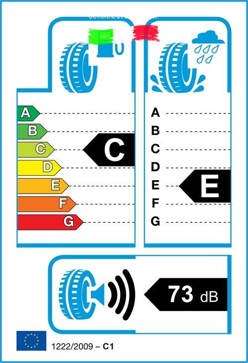 Gli pneumatici sono classificati nell’etichettatura dei pneumatici UE secondo tre caratteristiche di performance: l’efficienza del combustibile(lettere da A a G), l’aderenza a umido (lettere da A a G) ed esterna emissione rumore (decibel).