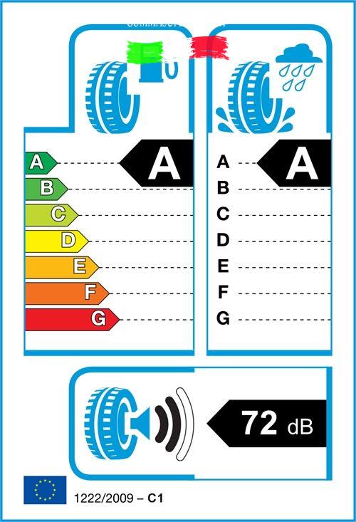 Gli pneumatici sono classificati nell’etichettatura dei pneumatici UE secondo tre caratteristiche di performance: l’efficienza del combustibile(lettere da A a G), l’aderenza a umido (lettere da A a G) ed esterna emissione rumore (decibel).